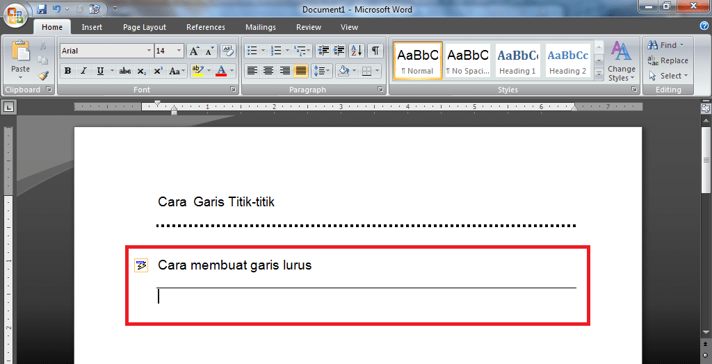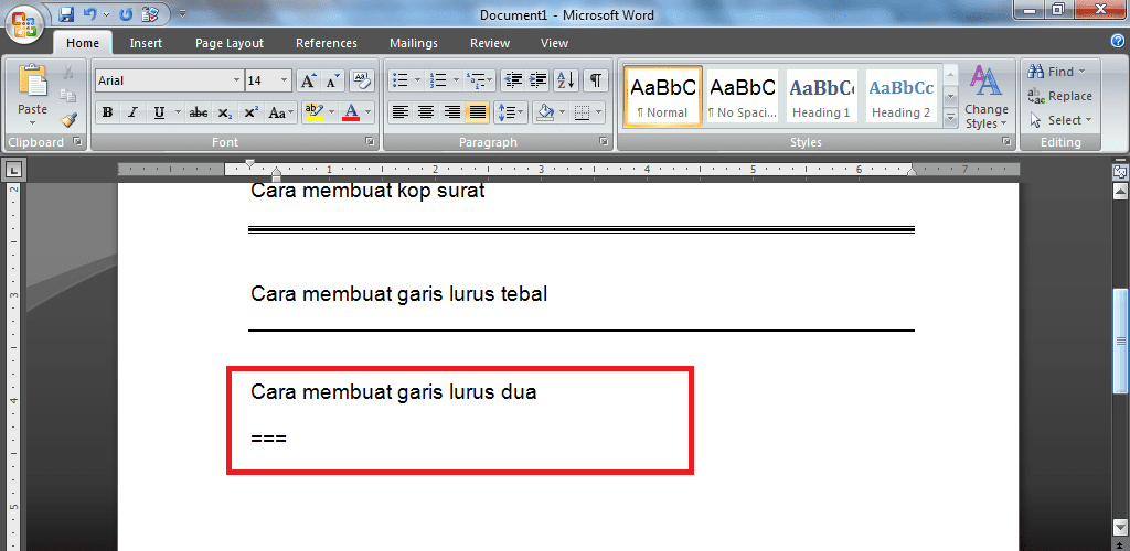 Selesai, berikut tampilan dua garis lurus di dokumen Ms.Word.