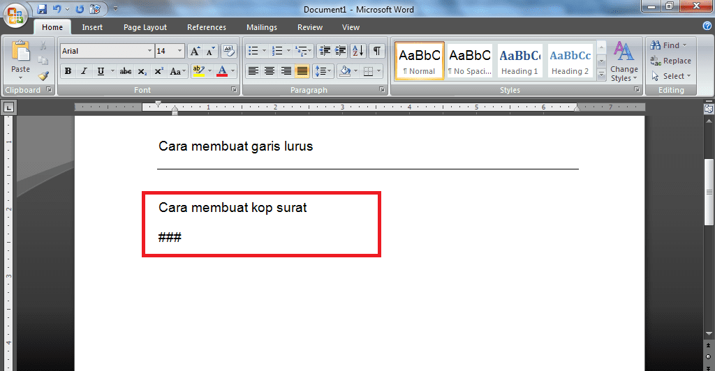 3. Untuk membuat garis untuk kop surat ketikkan ikon pagar (###) tiga kali dan kemudian klik enter.