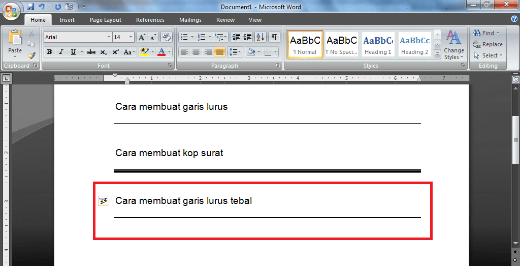 Selesai, berikut tampilan garis lurus tebal di dokumen Ms.Word.