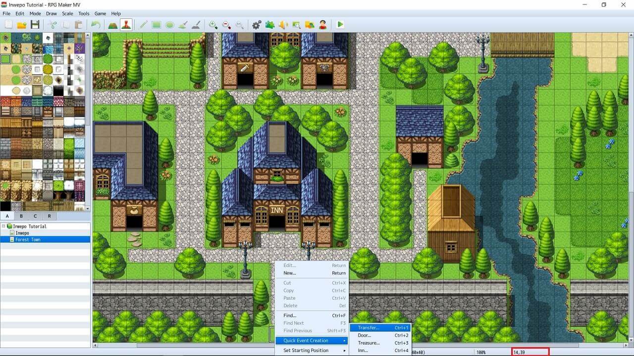 Catatan: Kita bisa menggunakan opsi door pada quick event creation untuk membuat efek yang serupa dengan efek dari transfer. Hanya saja kita akan mendapatkan animasi pintu jika menggunakan opsi door.
