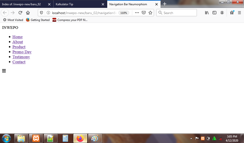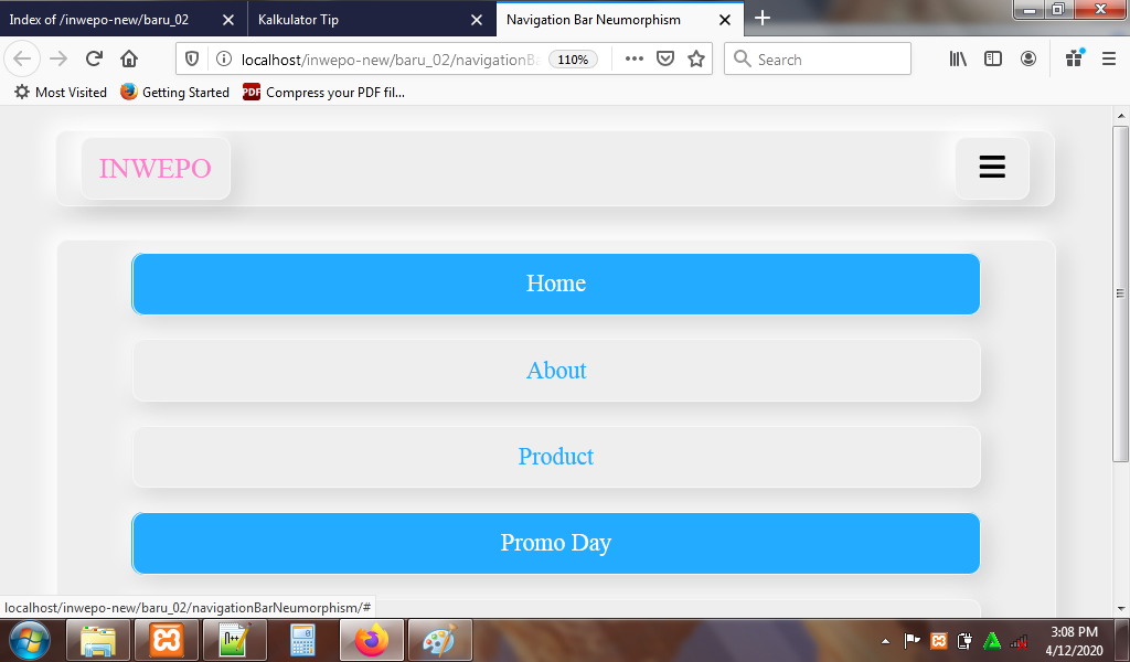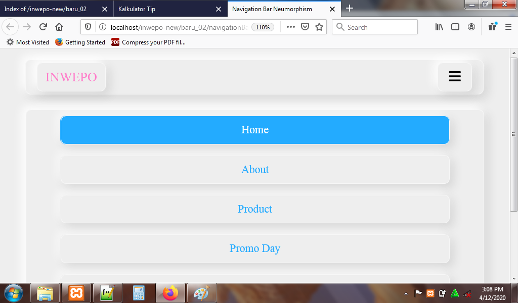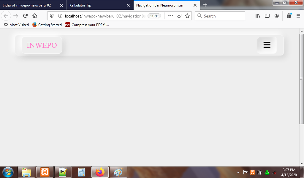 5. Reload alamat url : http://localhost/DropdownNeumorphism. Tampilan awal menu, tapi tampilan dropdown belum muncul.