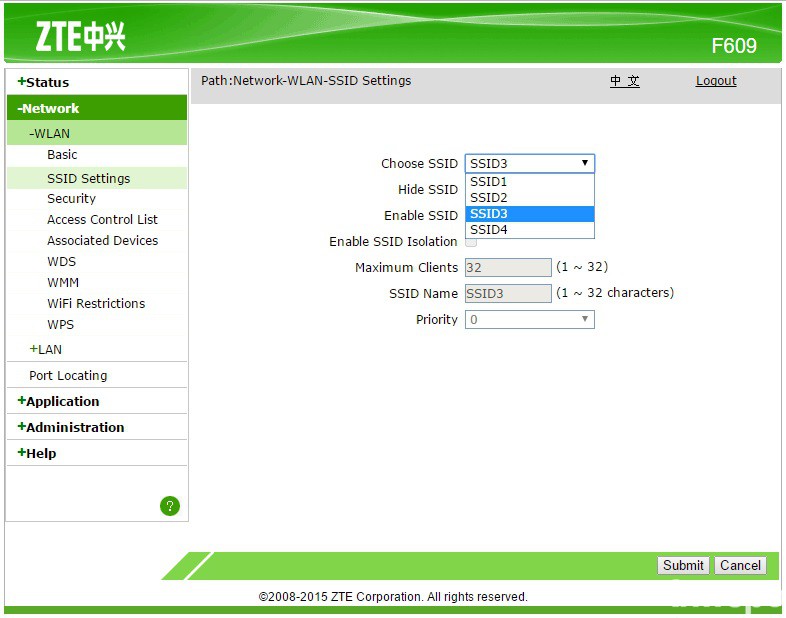 2. Masuk ke Menu Network – SSID Settings – Choose SSID. Pilih SSID baru yang ingin Anda aktifkan kemudian tekan tombol Submit.