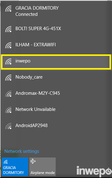 5.  Buka icon WiFi Anda kemudian cek daftar SSID untuk memastikan jaringan baru tadi telah terbentuk.