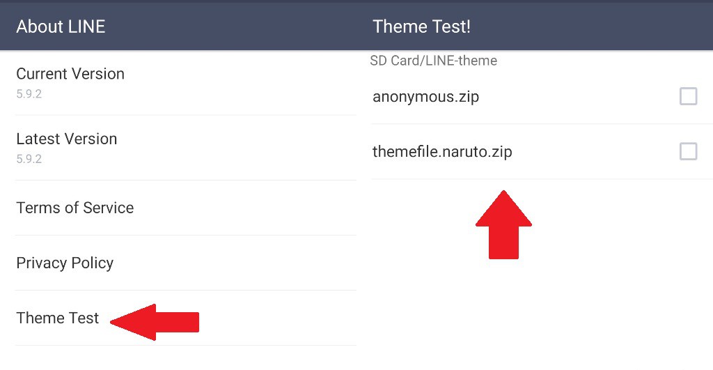 untuk dapat mengaktifkan fitur theme changer, caranya: buat folder line-themes di directory sdcard/line-themes/ masukan tema ke folder line-themes. nama tema wajib di rename, misal themefile.37 menjadi themefile.zip