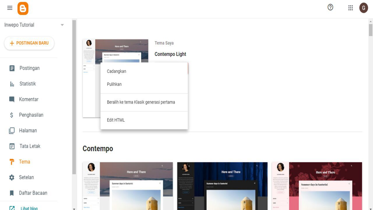 1. Pertama yang perlu di lakukan adalah kamu masuk pada blogspot kamu, pilih tema, lalu edit html seperti ini :