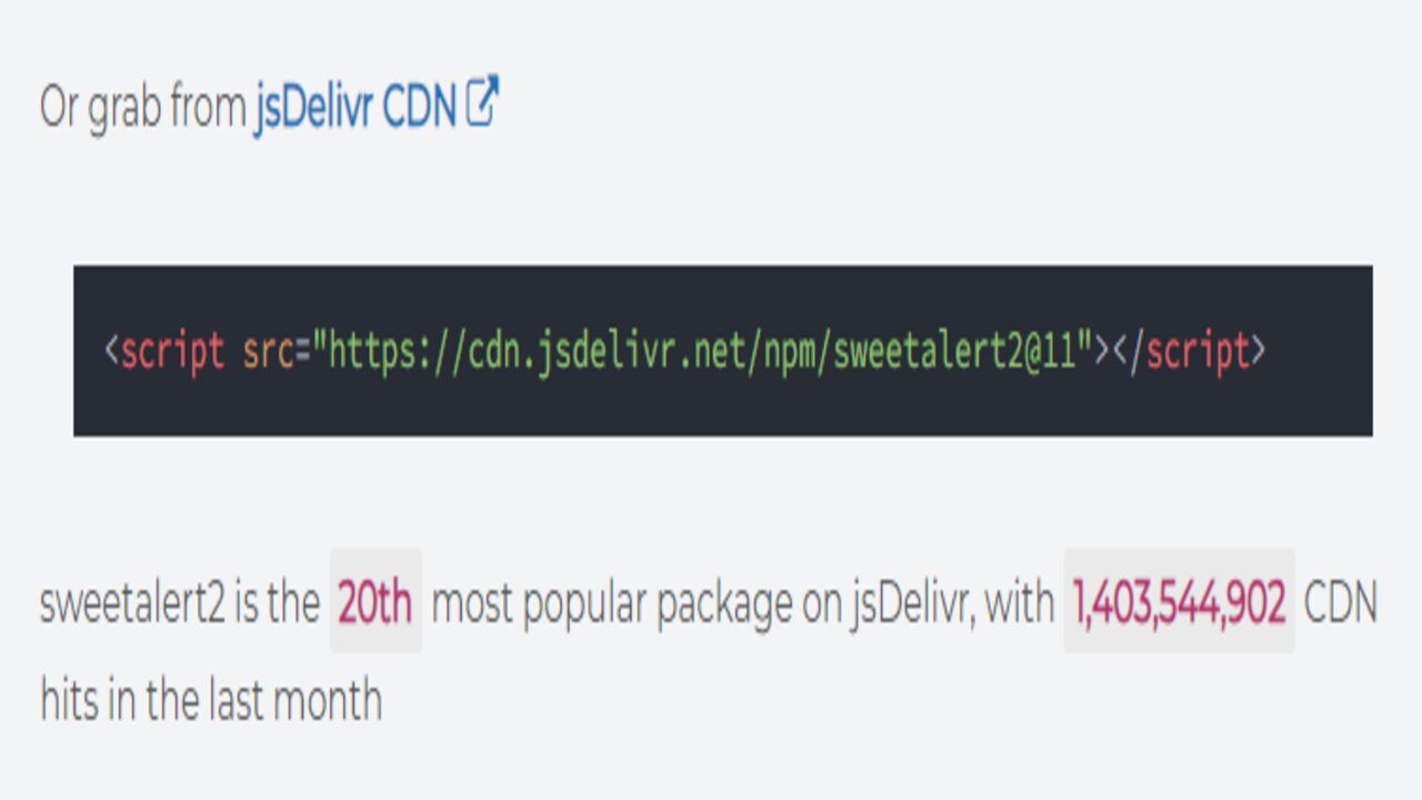 2. Setelah itu masuk pada dokumentasi situs resmi sweet alert 2 nya, scroll ke bawah sampai menemukan script CDN :