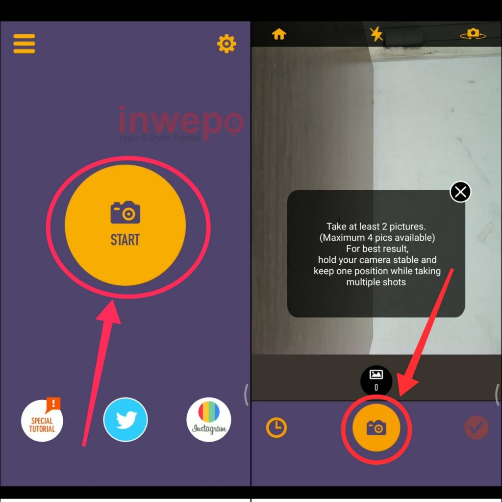 2. Langkah kedua, jika sudah langsung saja buka aplikasinya dan tap menu START lalu ambil gambar menggunakan tombol shutter.