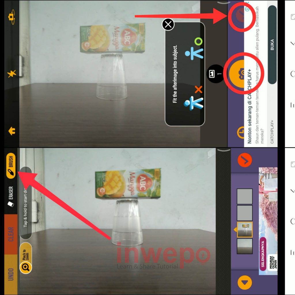 3. Langkah ketiga, pastikan kamu mengambil 2 gambar. Yang pertama hanya background dan yang kedua background beserta objek. Jika sudah tap ceklis, selanjutnya gunakan menu brush dan blok objek yang ingin dibuat melayang.
