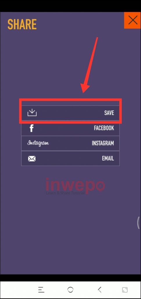 5. Langkah kelima, tap Save untuk menyimpannya ke galeri atau tap menu-menu sosial media untuk membagikannya ke berbagai media sosial.