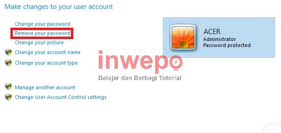 6. Selesai, jika kamu ingin menghapus kata sandi kamu, kamu bisa klik pada teks Remove your password.
