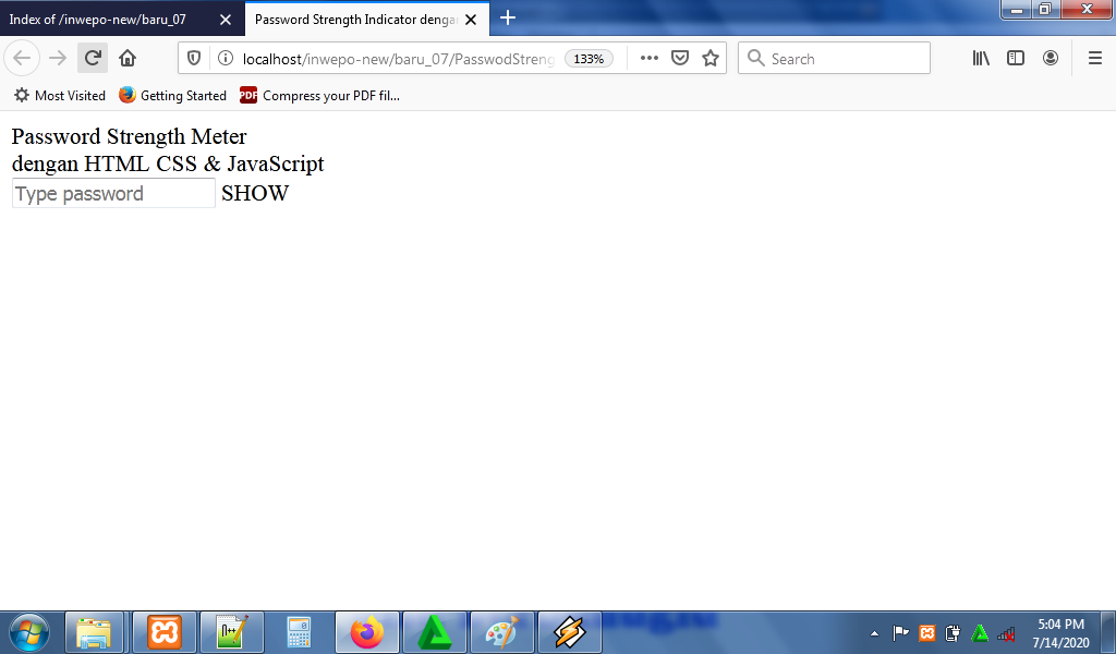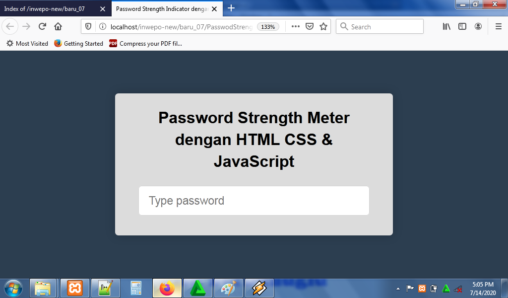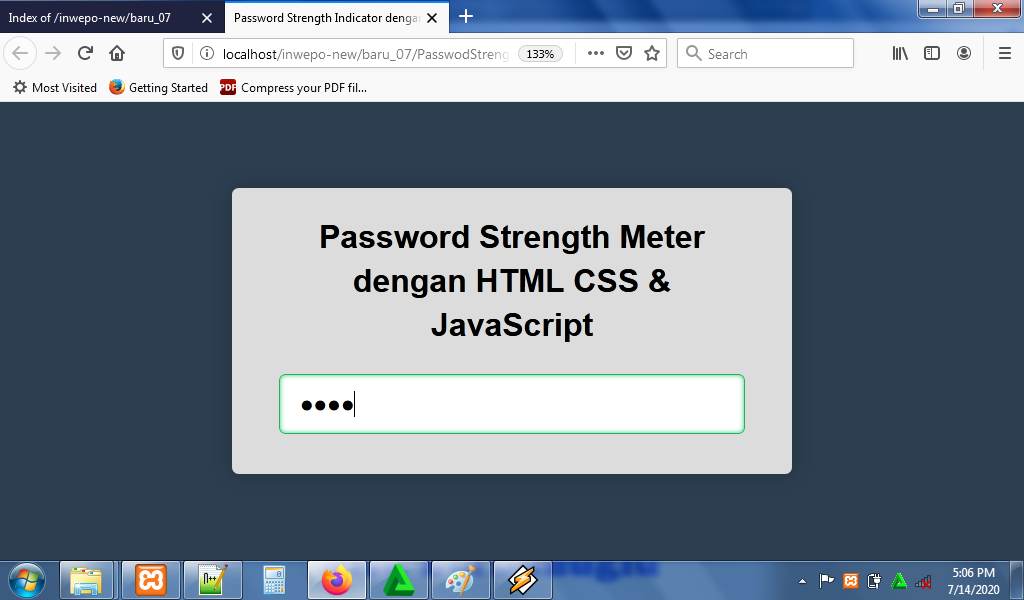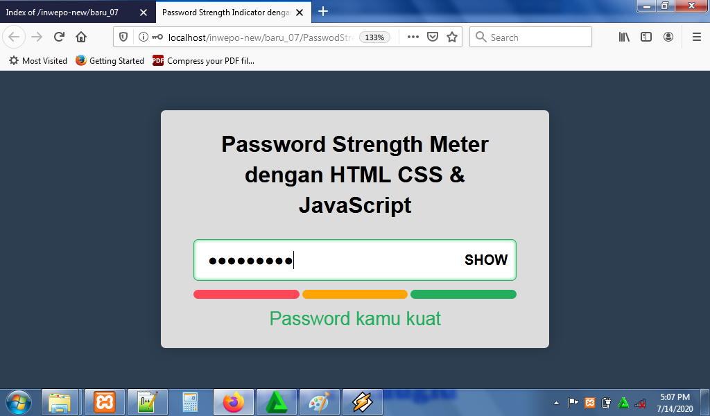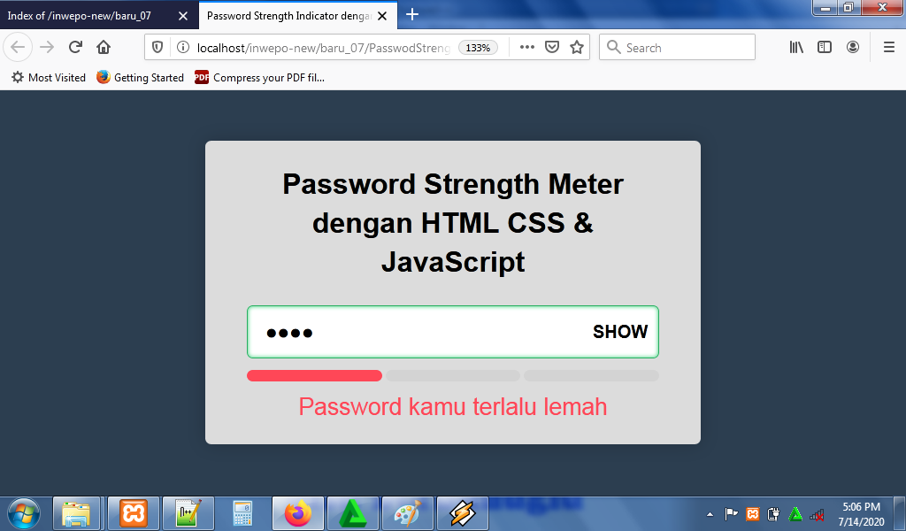 3. Untuk melihat hasil script code diatas, kamu bisa buka browser kamu ketiklah http://localhost/StrengthMeter.