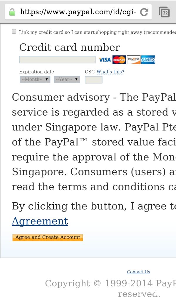 jika sudah selesai semua di isi, tap button “agree and create account”. Selesai membuat akun PayPal.