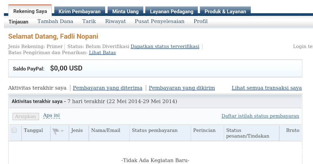 Seperti yang kamu ketahui terdapat tiga jenis akun PayPal yaitu Personal, Premier, dan Business. Penjelasan: