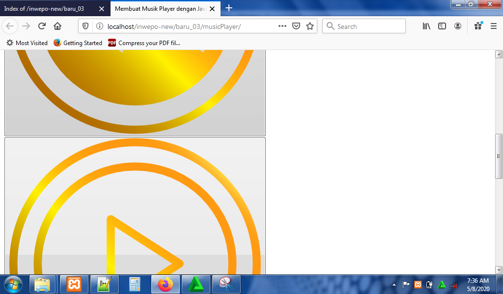 4. Untuk melihat hasil script code di atas, kamu bisa buka browser kamu ketiklah http://localhost/PlayerMusic.