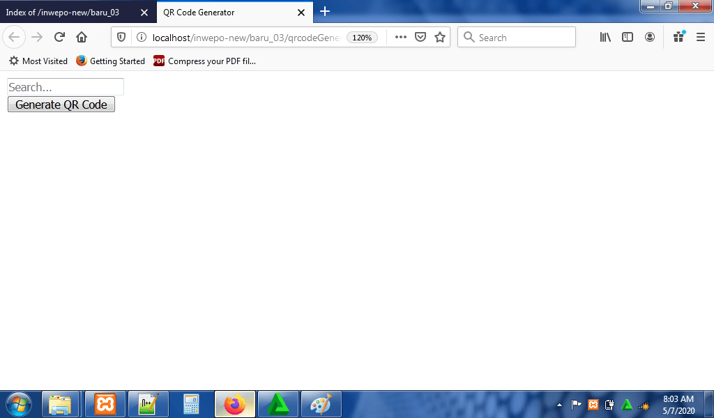 6. Reload alamat url : http://localhost/QrcodeGeneration. Tampilan awal dari QR Code.