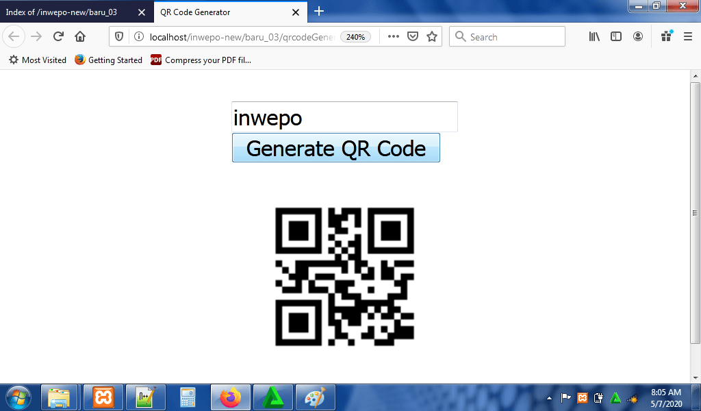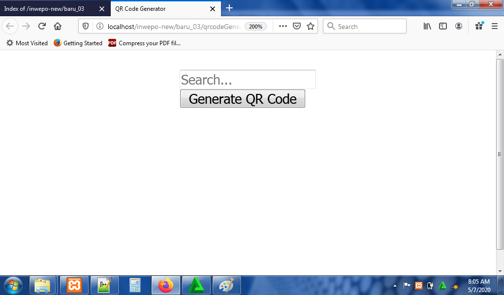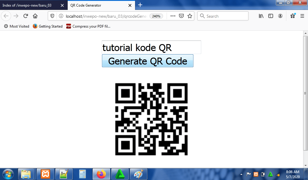 4. Untuk melihat hasil script code di atas, kamu bisa buka browser kamu ketiklah http://localhost/QrcodeGeneration.