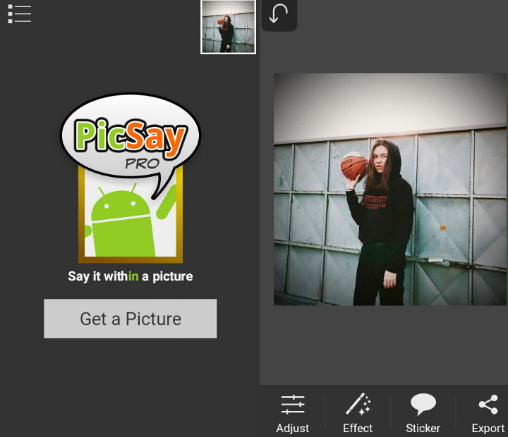 1. Buka aplikasi Picsay – Get a Picture – Masukan Foto.
