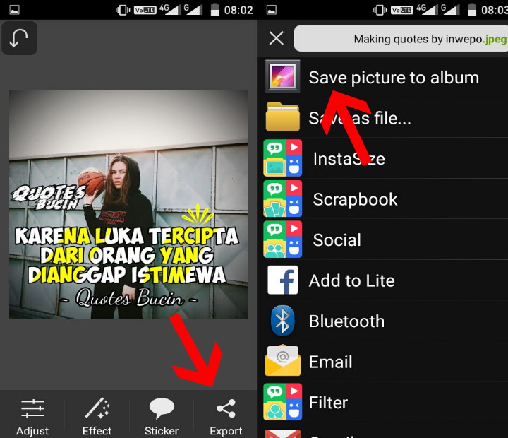 9. Sampai disini kamu sudah berhasil membuat Making Quote pada Foto menggunakan Picsay. Langkah terakhir kamu hanya perlu menyimpan hasil editingnya.