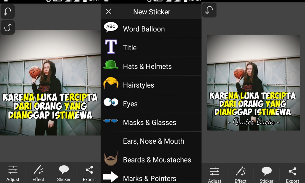 8. Setelah dirasa sudah cukup dengan kalimatnya, lalu kita tambahkan object komik untuk mempercantik fotonya.