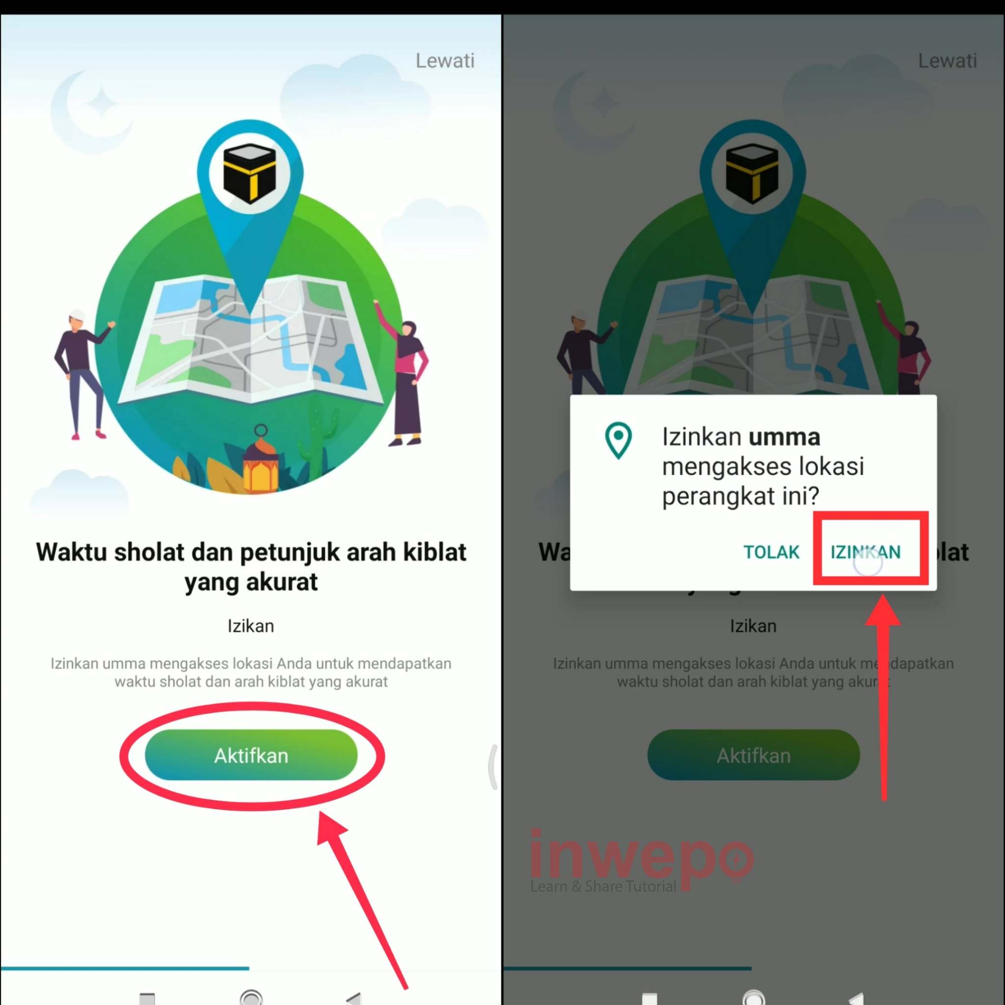 2. Langkah kedua, buka aplikasi Umma lalu tap menu Aktifkan kemudian tap menu Izinkan untuk memberi izin akses pada aplikasi.
