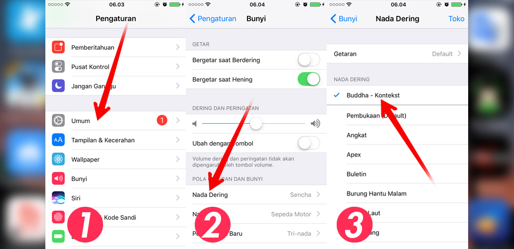 6. Buka perangkat iOS kamu, masuk ke “pengaturan” pilih menu “bunyi” lalu pilih “nada dering” cari lagu yang sudah kamu edit tadi dan pilih lagu tersebut menjadi nada dering dan selesai.
