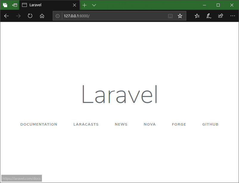 2. Masukkan link yang telah di sediakan oleh Laravel (umumnya alamatnya ialah http://127.0.0.1:8000 ) kedalam browser anda. Nantinya website Laravel akan muncul kedalam localhost anda. Untuk menampilkan halaman tersebut kedalam website Laravel, kita harus melakukan proses pembuatan View dan mengarahkan obyek yang telah kita buat kedalam Route yang telah di sediakan.