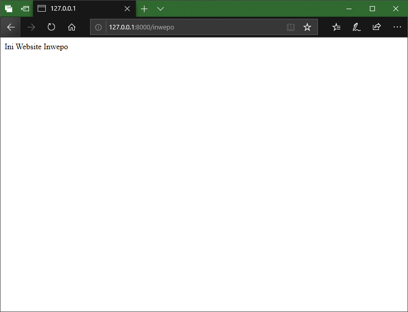 Untuk memastikan bahwa Route dapat bekerja, pada website Laravel, masukkan tambahan link /inwepo di dalamnya (sehingga nantinya akan menjadi seperti : http://127.0.0.1:8000/inwepo ). Nantinya akan muncul halaman website berupa tulisan Ini Website Inwepo di dalamnya.
