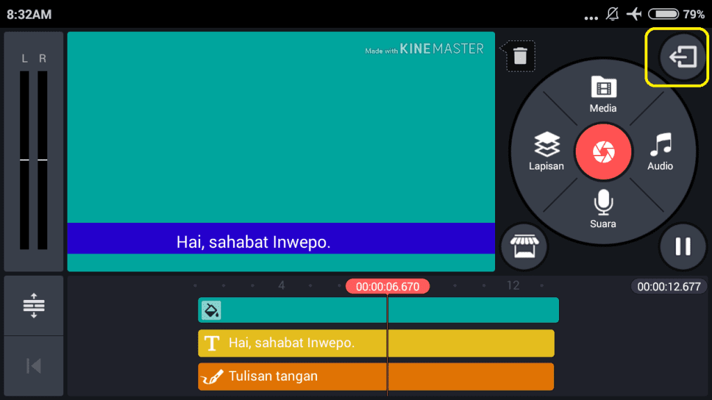 15. Untuk meng-impor, klik tanda panah di pojok kanan atas. Kamu dapat menyimpan video kamu dan share ke social media kamu.