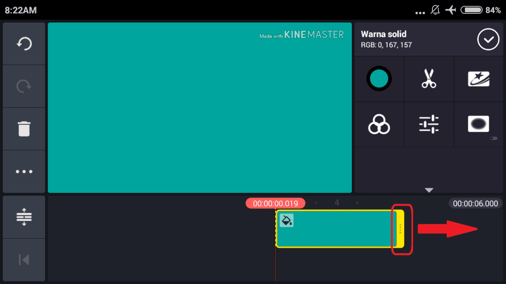 4. Panjangkan durasi background sesuai keinginan kamu, dengan menarik tiga titik di belakang background.