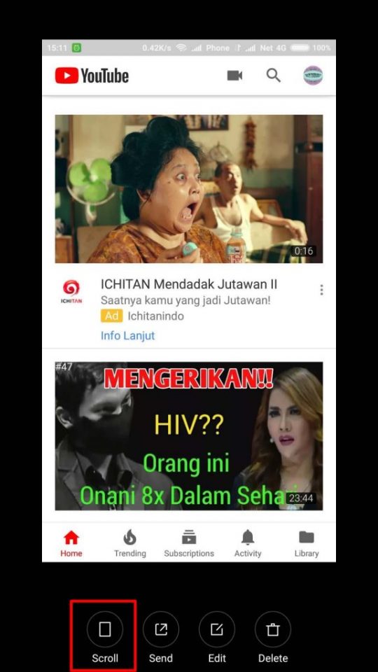 7. Selesai, kini kamu mendapatkan hasil screenshot dengan layar yang memanjang.