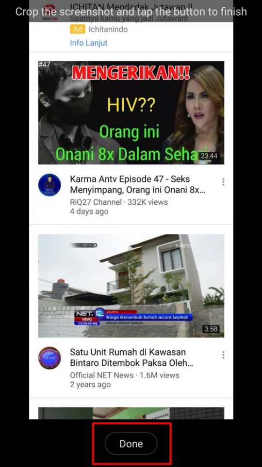 6. Otomatis gambar akan bergulir ke bawah. Sesuaikan dengan kemauan kamu. Setelah kamu rasa cukup hasilnya, maka tekan Selesai atau “Done“. Sampai tahap ini, selain gambar bisa otomatis bergulir kebawah, kamu juga bisa secara manual menggulirnya dengan menggeser dengan jari ke bawah.