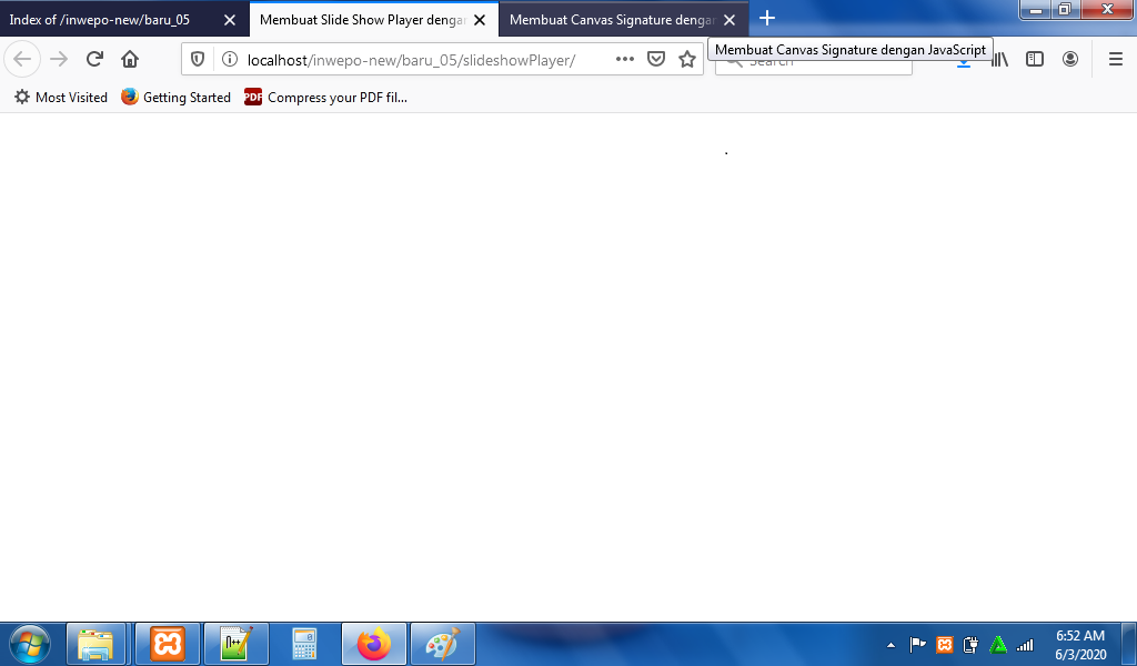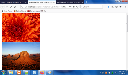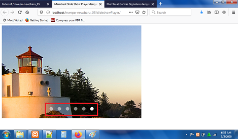 4. Untuk melihat hasil script code di atas, kamu bisa buka browser kamu ketiklah http://localhost/SlideShowPlayer.