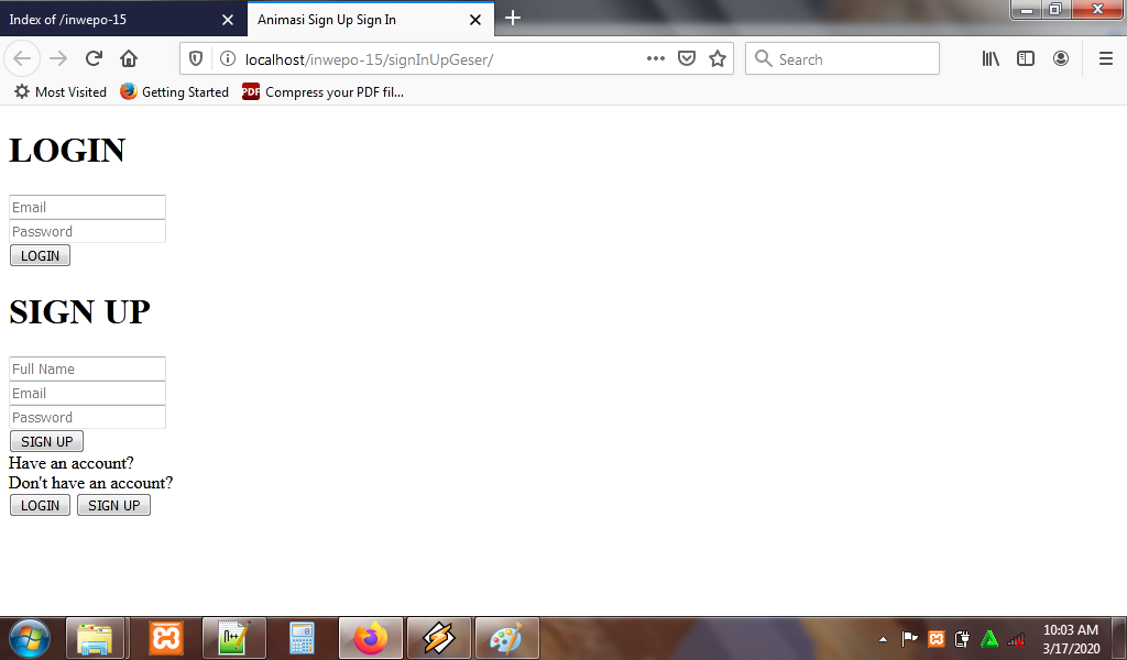 6. Reload alamat url : http://localhost/SliderForm. Login form sudah jadi, namun efek slider belum muncul.