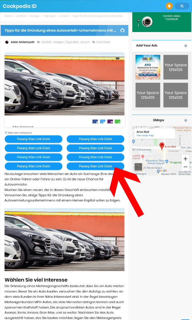 Disini penulis akan memasangnya di atas postingan blog.
