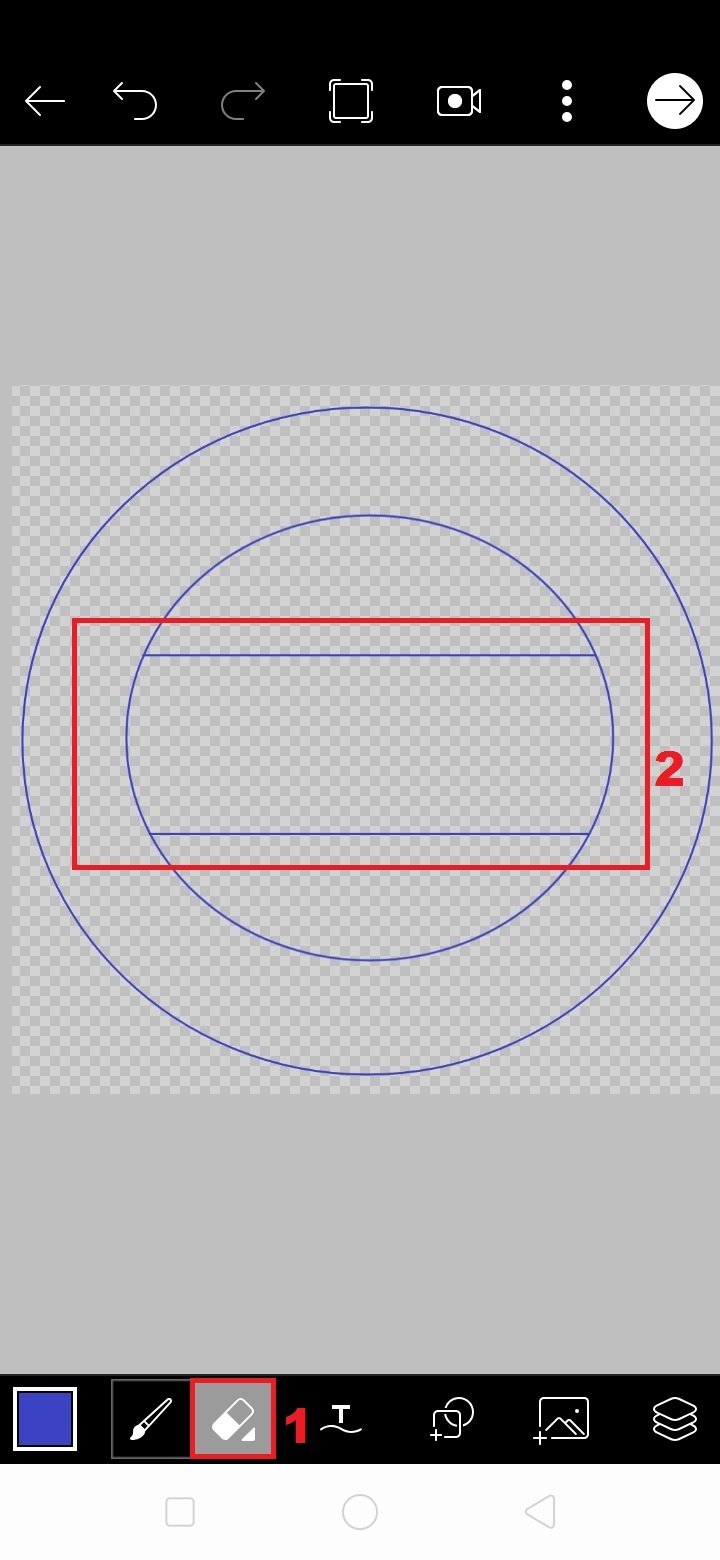 15. Klik ‘Hapus’, dan hapus garis persegi di luar lingkaran kecil.