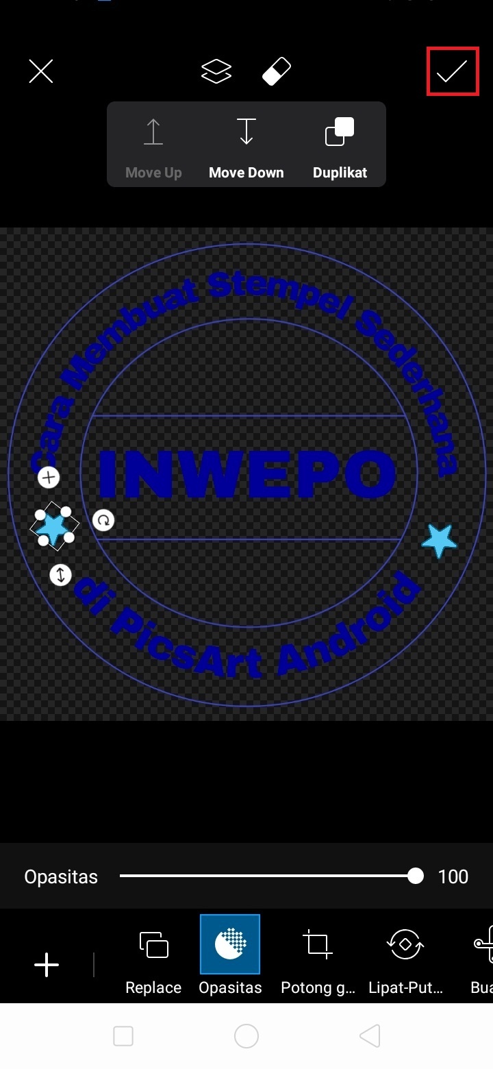 Demikian penjelasan dari tutorial ‘Cara Membuat Stempel Sederhana di PicsArt Android’. Selamat mencoba.