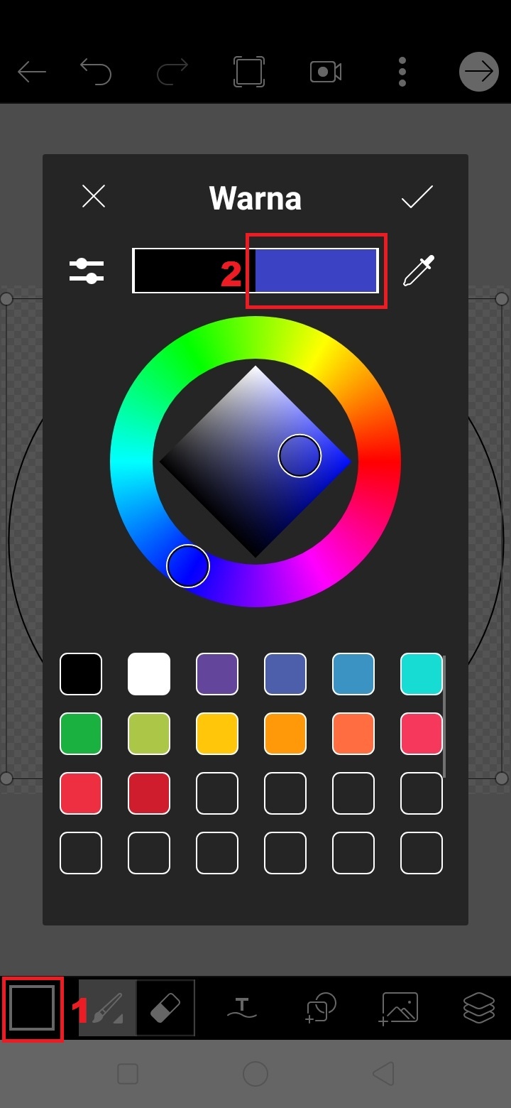 7. Klik ikon ‘Warna’ – pilih warna – klik centang.