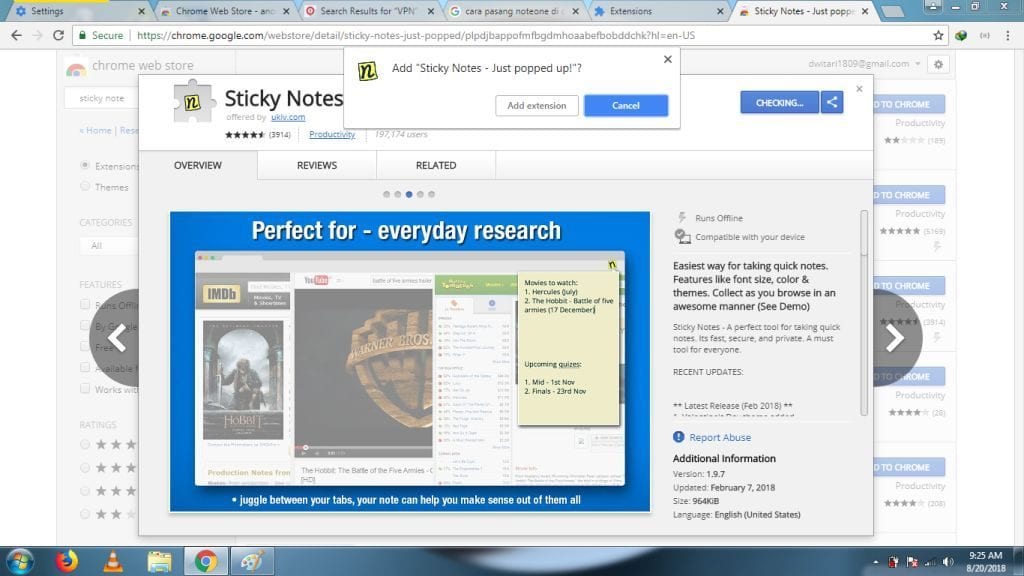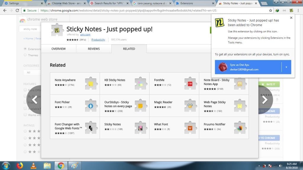 7. Ada tanda peringatan bahwa ekstensi Sticky Notes tadi telah dipasang.