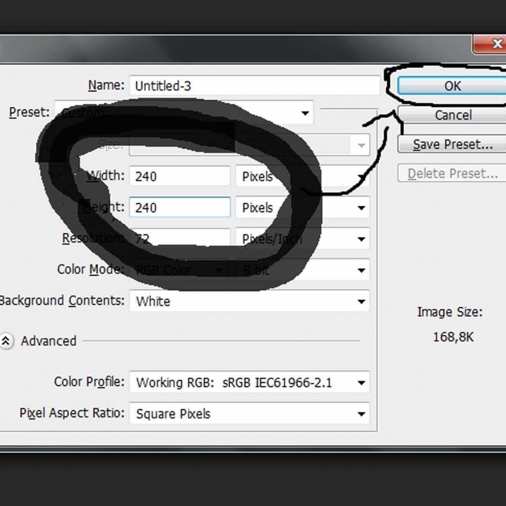 3. Atur ukuran kertas untuk gambar utama dengan ukuran 240 x 240.