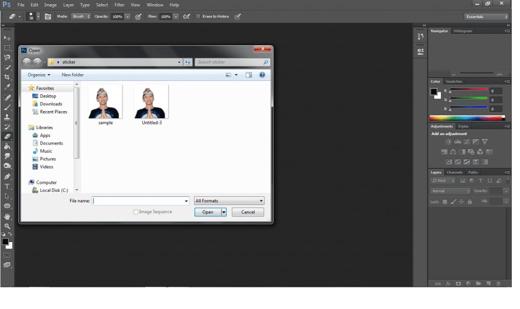4. Pilih menu open> lalu pilih foto yang diinginkan untuk di edit(di usahakan untuk foto yang 1 warna background aja).
