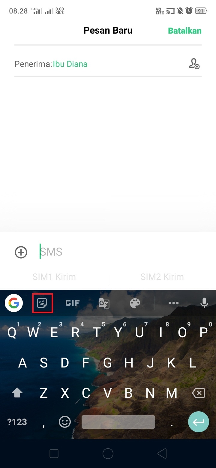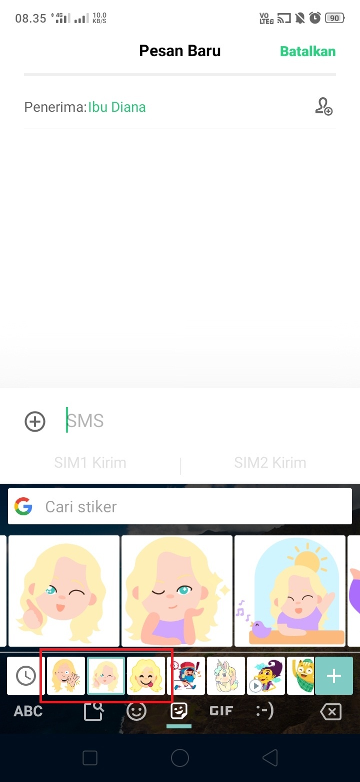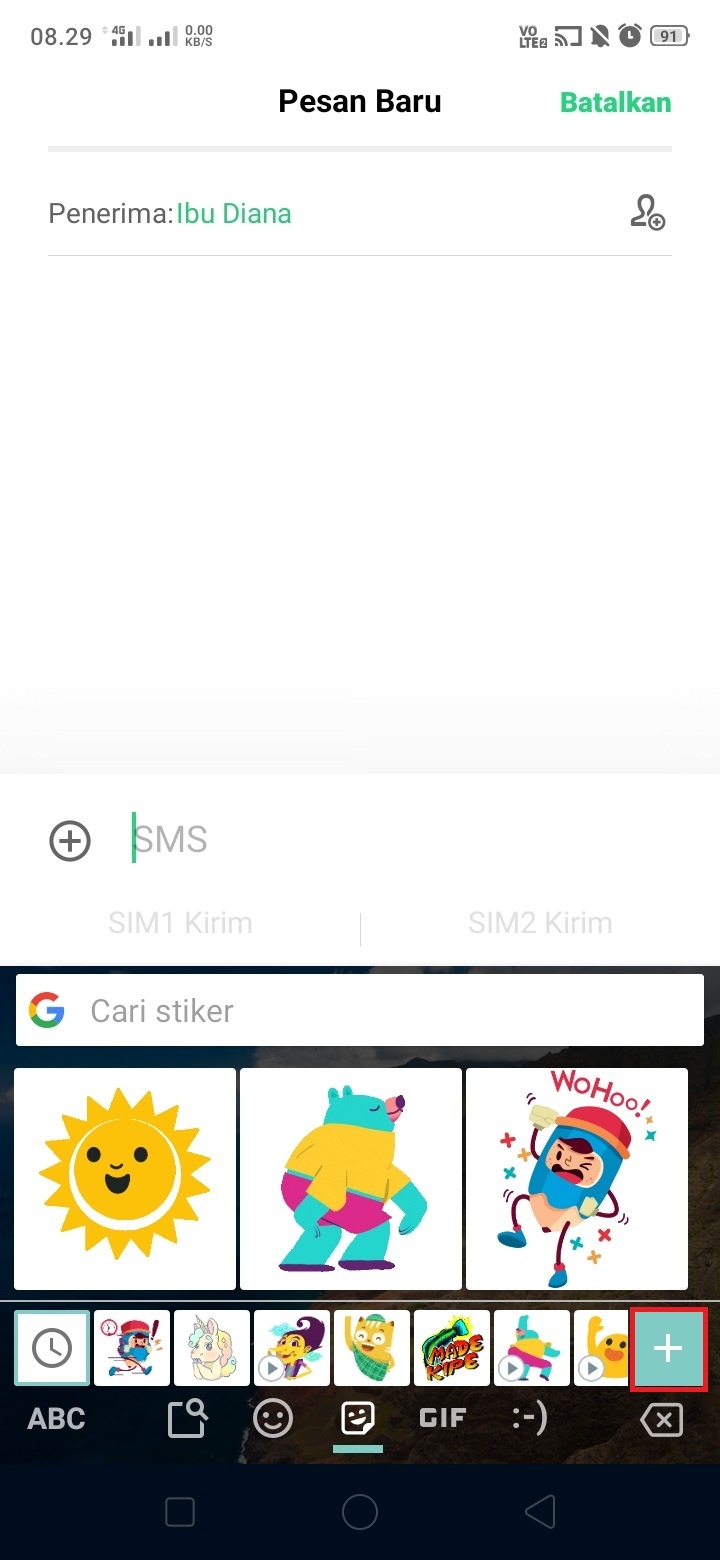 10. Untuk mengetahui apakah stiker yang kamu buat sudah tersedia di GBoard, buka kembali aplikasi chatting kembali. Klik ‘Stiker’.