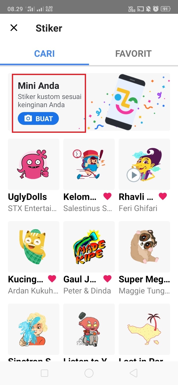 4. Disini terdapat banyak sekali gambar stiker dan GIF. Namun untuk membuat stiker dari wajah, klik tombol ‘Buat’.
