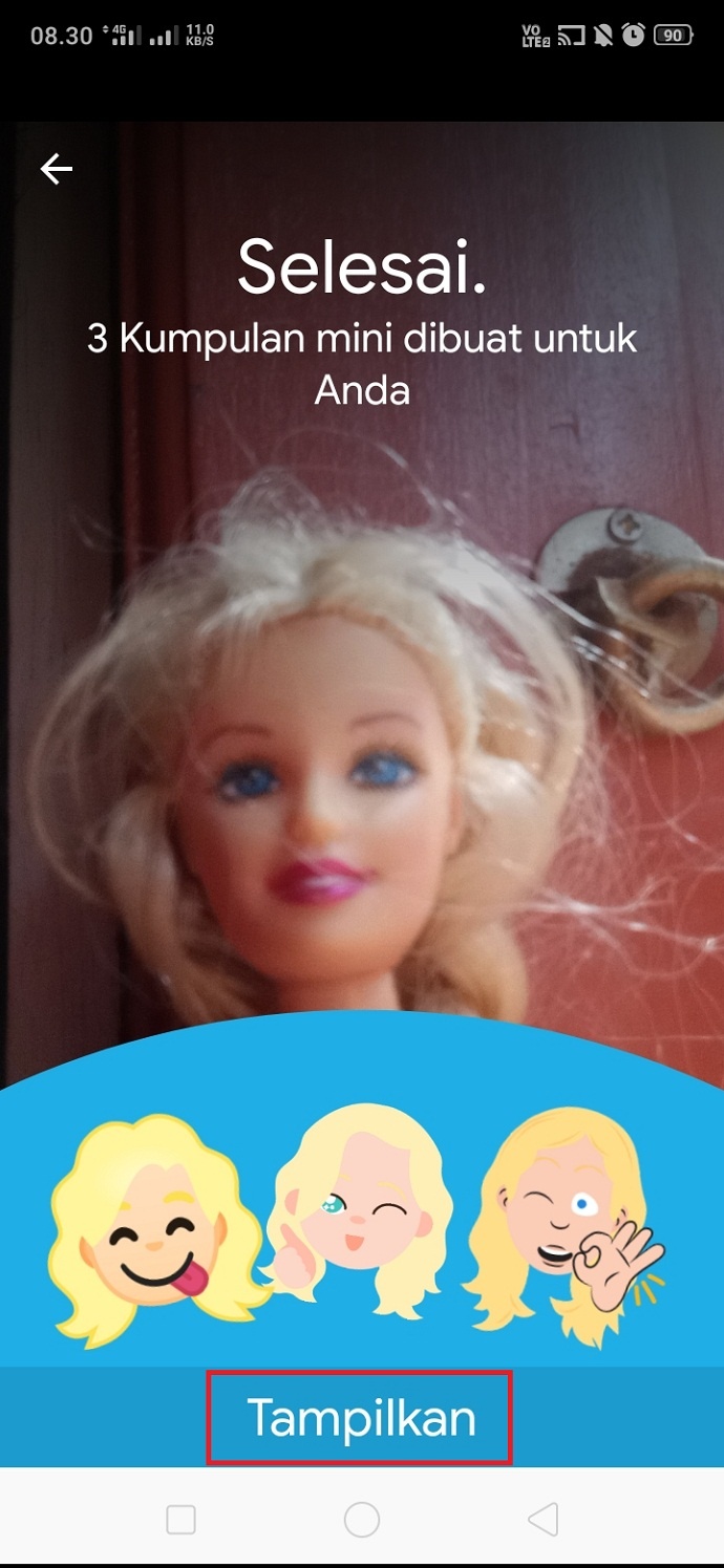 7. Setelah selesai, aplikasi menyediakan tiga kumpulan stiker yang berbeda. Klik ‘Tampilkan’ untuk melihat.