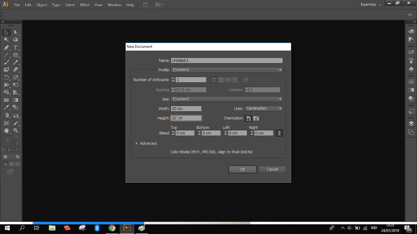 2. Atur ukuran lembar kerja sesuai dengan yang diinginkan, klik OK.