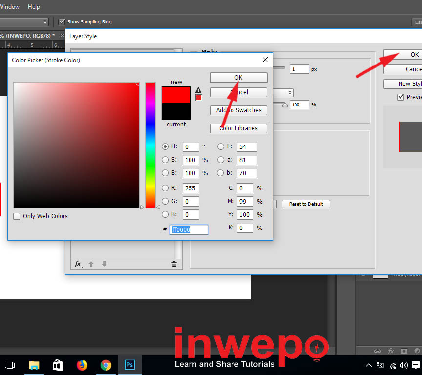 3. Pilih warna sesuai keinginan kamu – lalu klik ok – dan klik ok lagi.