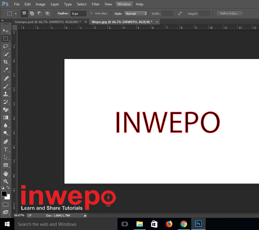 1. Siapkan lembar kerja kamu di Photoshop – buat sebuah text / tulisan sesuai keinginan kamu.