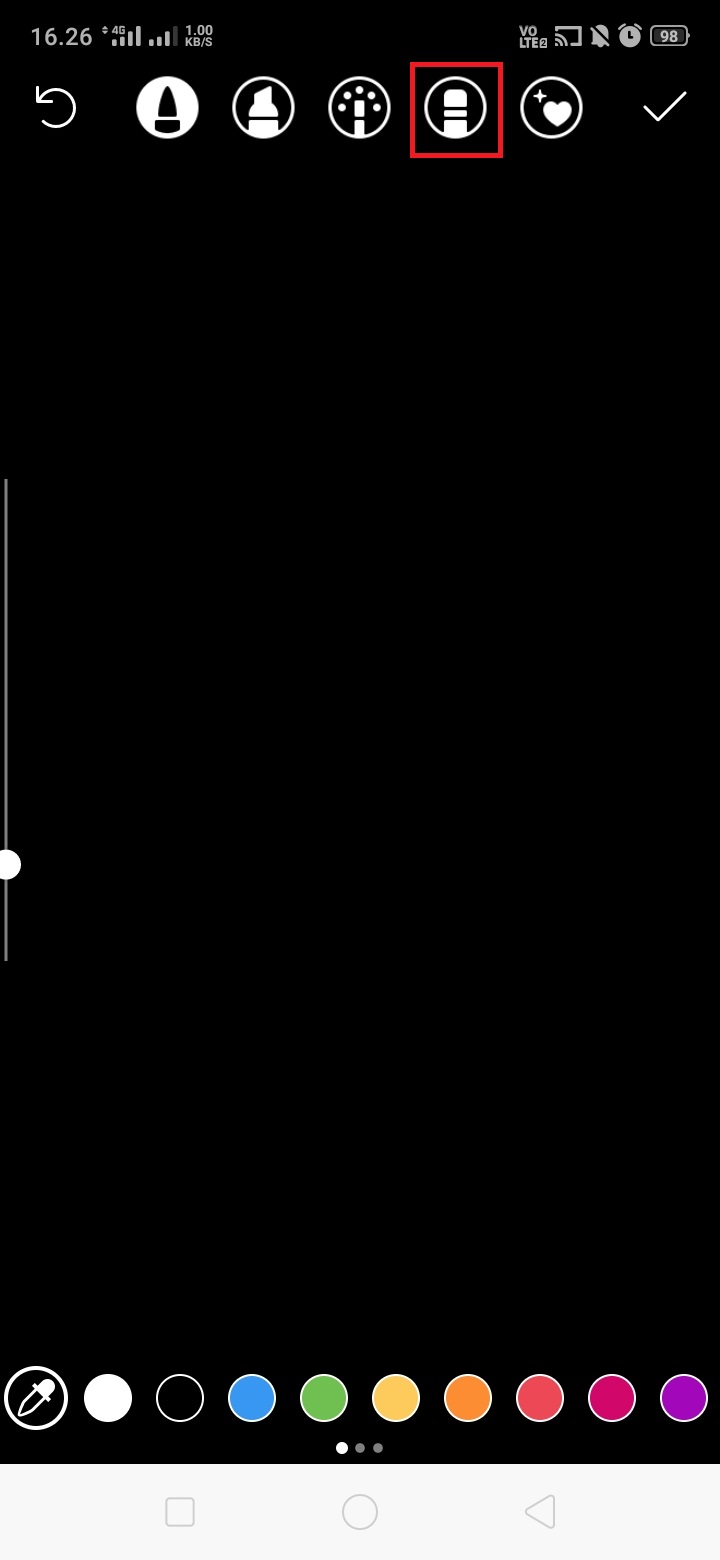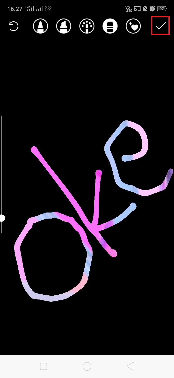 Tuliskan teks di layar instastory dan klik centang.