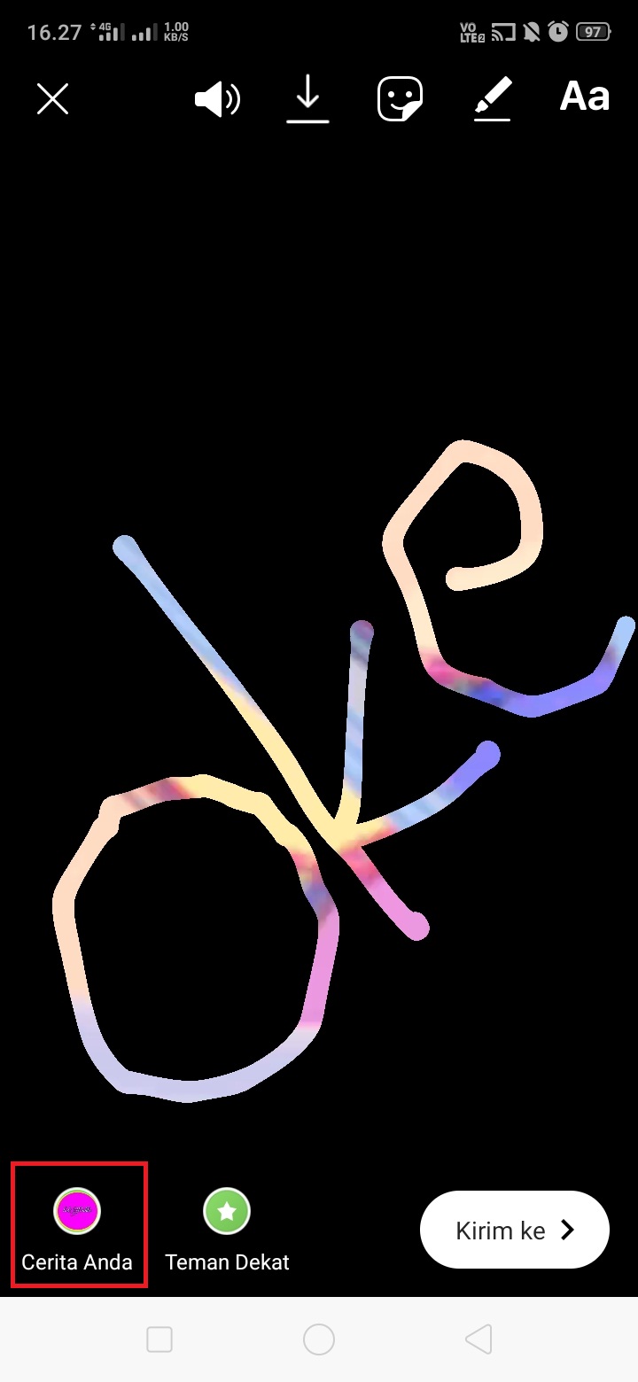 13. Klik icon cerita anda dan selesai. Kini teks kerlap kerlip kamu telah muncul di InstaStory kamu.