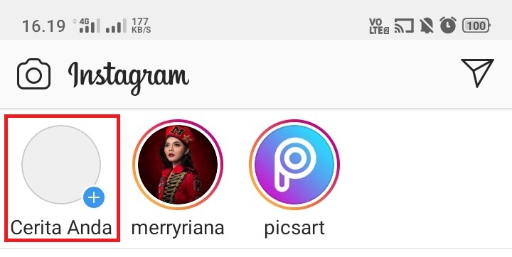 2. Klik ikon profil (Cerita Anda) di Instagram atau swipe dari kiri ke kanan pada halaman Instagram.
