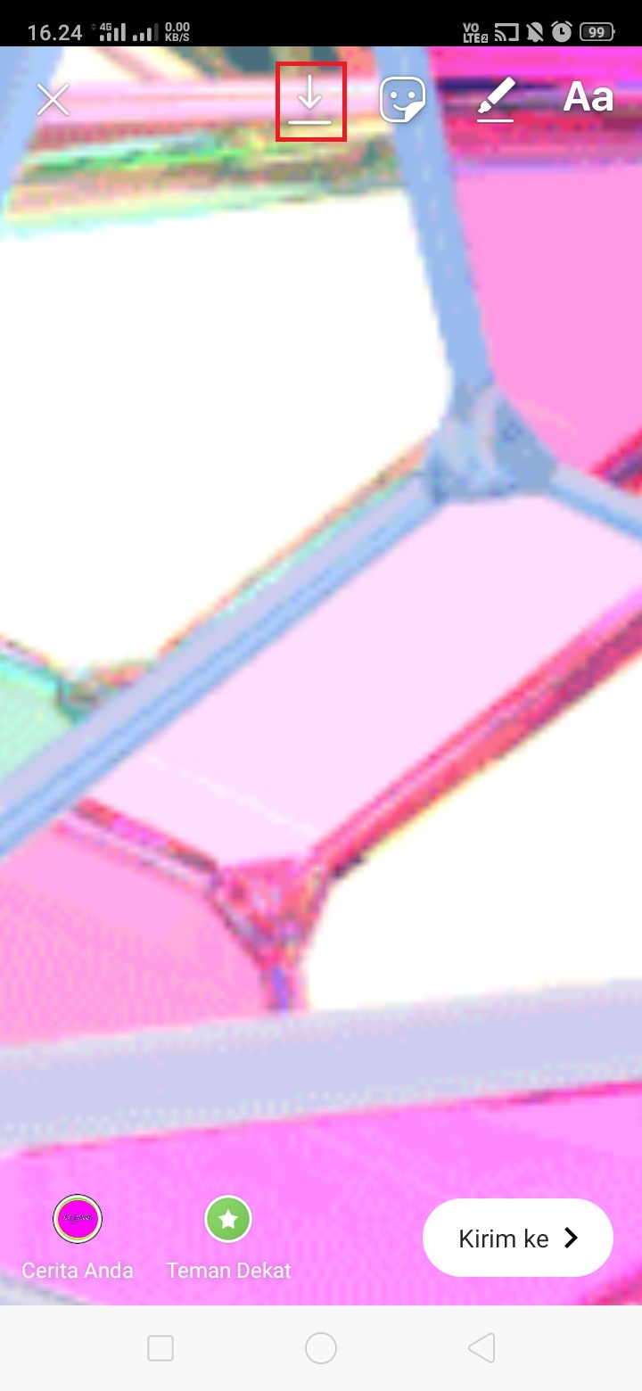 8. Klik ikon download untuk menyimpan gambar. Keluar dari fitur instastory.